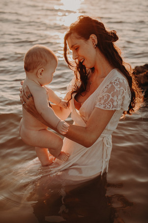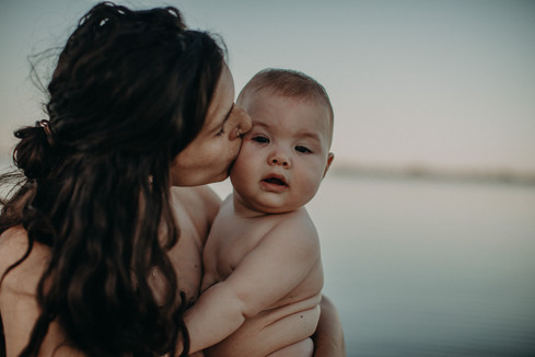 Brittany: There’s something incredibly powerful about photographs; they can capture a moment in time, preserving its history, or they can tell a story, evoke emotions in parts of us we never thought we’d feel. I have been very privileged to have had Kayla capture different moments in my life - from a boudoir shoot to my pregnancy announcement photos, I’ve always had full trust in her and her creative abilities. Kayla is not only family, but a friend. My son was born in May this year, and while his arrival was very welcomed, it occurred in less than ideal circumstances. On top of a world pandemic and isolation, my planned induction turned into sudden and severe pre-eclampsia, which then turned into an emergency c-section. I haemorrhaged on the operating table and postpartum, and spent two nights in the ICU, seeing my son only when he was brought down to me to feed. My journey into the world of motherhood felt wrong and disconnected. I felt incapable, weak, and afraid. As a young woman with existing complex mental illness, I had no idea how I was ever going to adjust to being a “mum”. Kayla had suggested to me a motherhood shoot in lieu of our cancelled maternity session (thanks COVID). She had a vision of sunset over water, of a